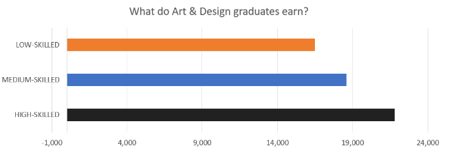 艺术与设计专业毕业生的起薪约为1.7万至2.1万英镑。