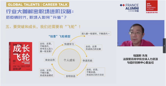 钱国新建议,所有想要有所突破和成长的职场人都要思考清楚自己究竟为何而工作,只有“当个人与工作环境特征、能力与热情完全匹配的工作才能给人带来幸福感”。从方法论角度层面而言,他还详细地介绍了“飞轮模型”——将个人成长与快速学习、快速实践、发明创造和商业运用环环相扣,在不断地总结、反思和迭代中实现蝶变与跃迁。