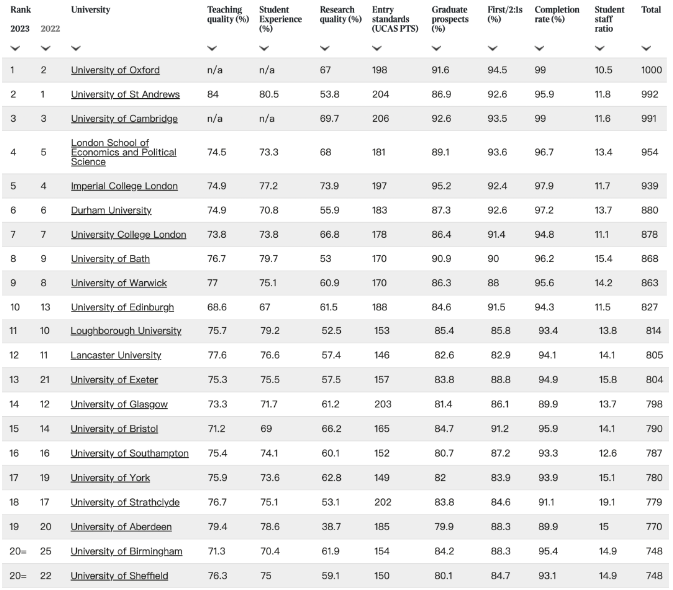 总的来说,如果说《泰晤士报》世界大学排名为留学生择校提供了一个严谨的学术参考,那么这份全英大学排名给我们提供的则是一种社会反馈和院校建设相结合的综合性评价。