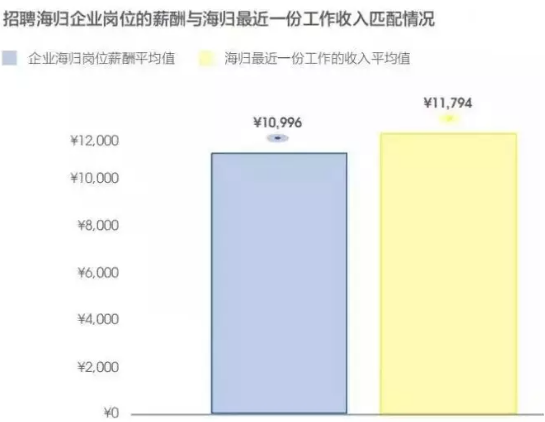 在薪资方面,58 同城发布的《2021高校毕业生就业报告》数据显示:2021 届高校毕业生,平均月薪在 7K 左右,而企业招聘海归的平均月薪为 10,996 元,大部分海归最近一份工作的收入平均值接近 12,000 元。