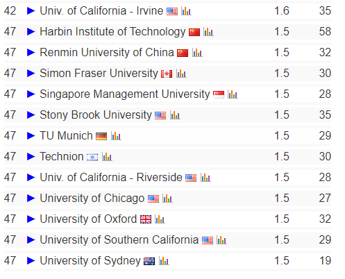 在此次排名中,中国大学的势头很猛,有5所高校闯入前20,其中清华大学位列第二,北京大学和上海交通大学并列第四,浙江大学位居第六,中科院跻身前十九。