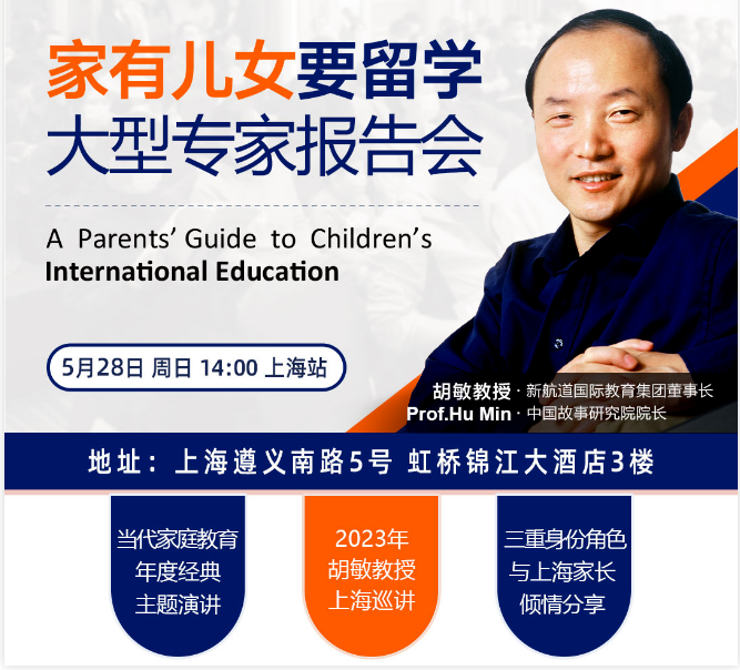 2023年“家有儿女要留学”专家报告会,上海巡讲仅此一场,胡敏教授将以三重身份与上海家长倾情分享。