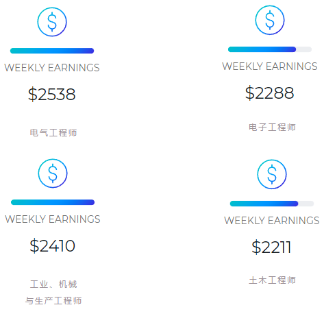 并且,电气工程师、电子工程师、机械工程师、土木工程师等职业的薪资都在2000澳元/周以上,比各行业平均水平高出40-60%之多!