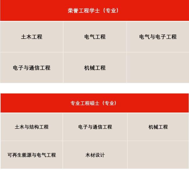 1、专业工程硕士学位(Master of Professional Engineering)早在2021年就增设了关注环保建造的“木材设计”方向;