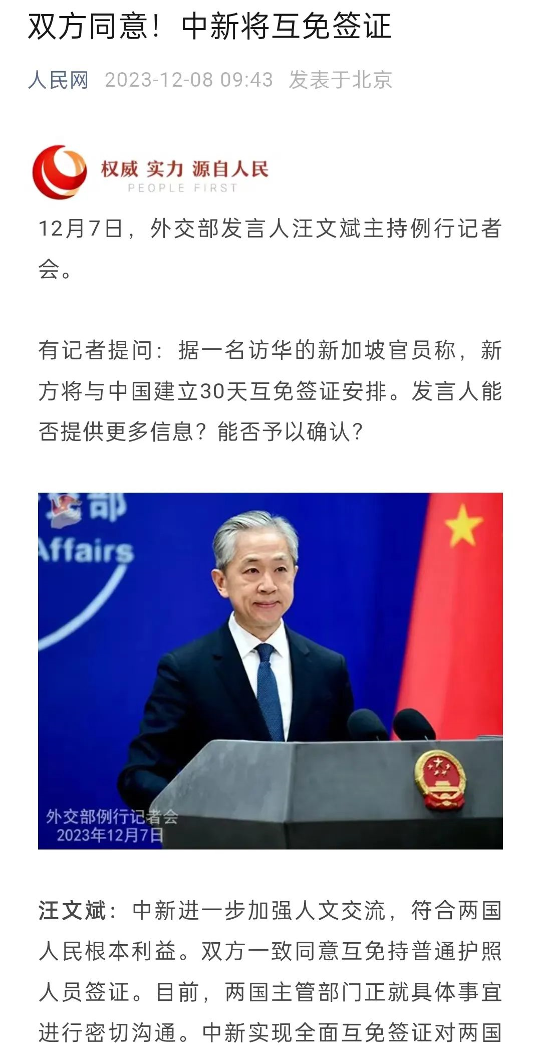 研学利好 消息第 一条!中国和新加坡将通过30天互免签证安排加强两国人员往来。