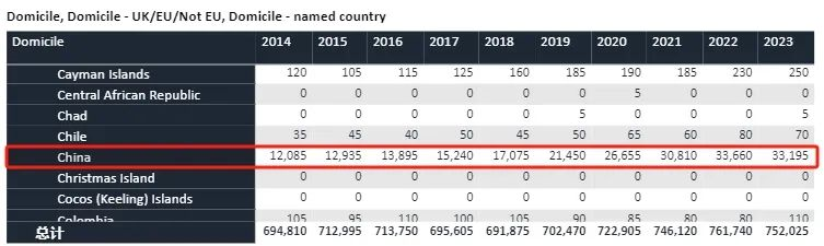 2022-2023申请季,中国学生申请人数总计为33,195(去年33,660)人,最终入学人数约为17,405(去年18,500)人,录取率约为52.4%。