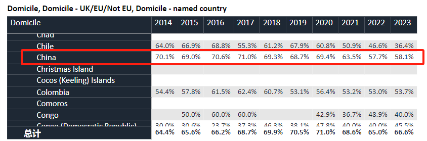 中国大陆学生通过UCAS申请了139,575份,收到81,060枚offer,offer率为58.1%。