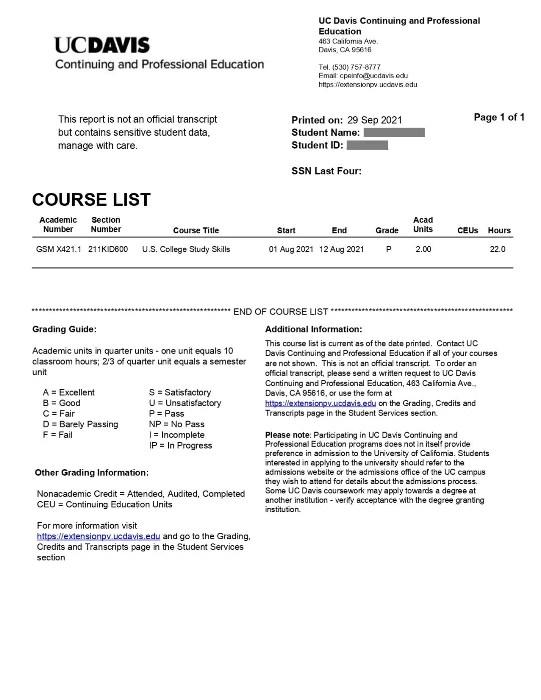 UC Davis 官方学分夏校