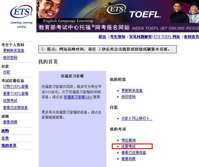 既然已经抱定决心“杀托”,就不妨先在线付清1635人民币考试费用和6元的银行费用,然后直接点击“注册考试”,拿下自己心仪的考位。
