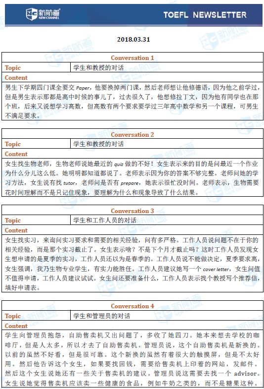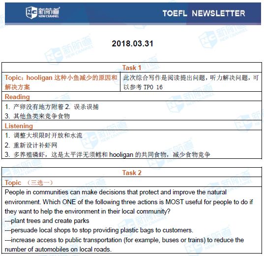 各位同学们~2018.3.31 的托福考试回忆来了!