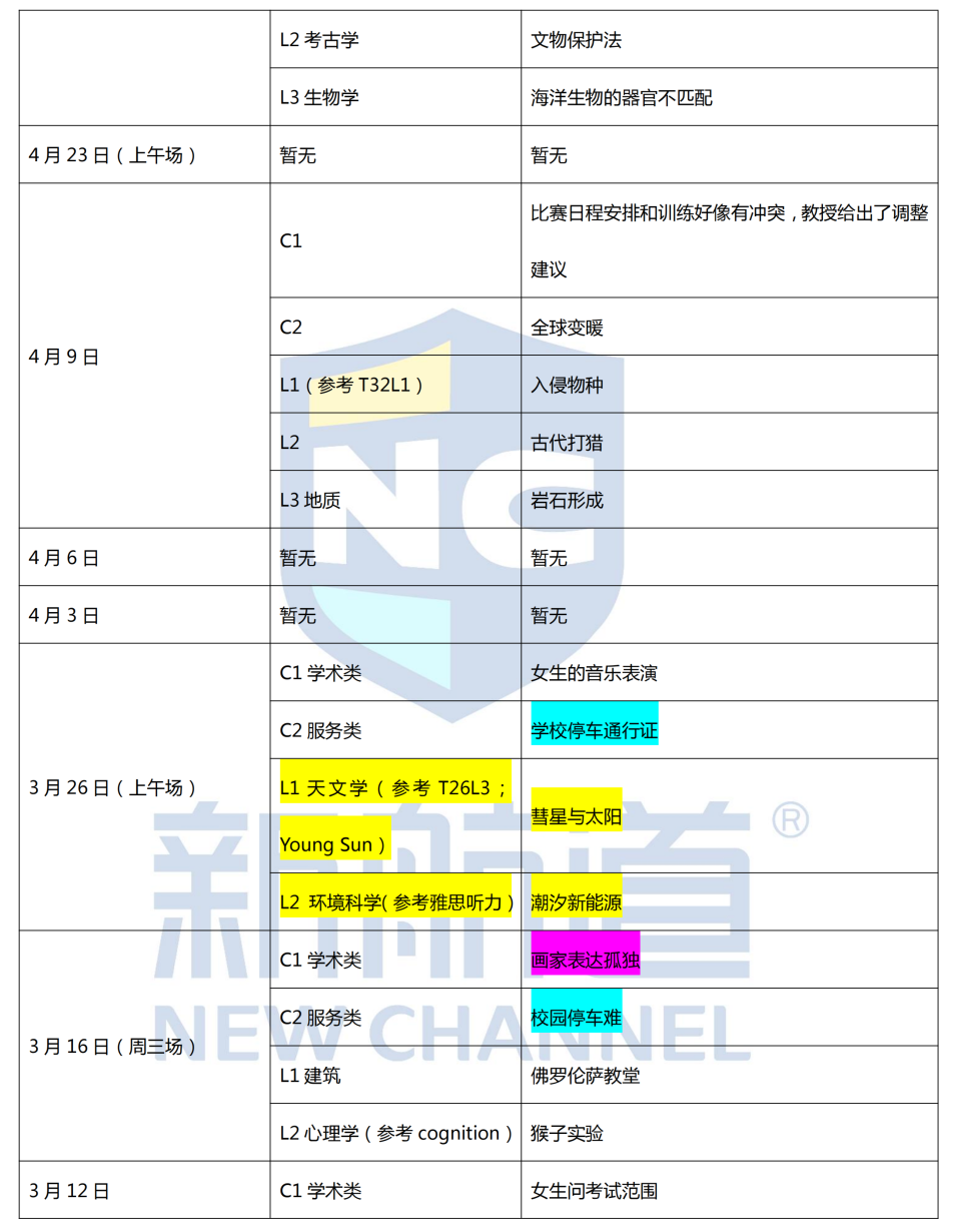 首先,以上给同学们呈现的是2022年上半年(1-6月)大陆地区,仅限于线下,一共36场考试以及听力部分主要话题。整体而言,对话涉及的场景以及讲座学科范围没有太出挑;大部分话题和场景比较中规中矩,仍然以旧题为主。唯两场让同学们措手不及的学科包括,3月2日考到了物理学;3月5日考到了气象学。其实这不打紧,在备考过程中,《托福听力真经》系列确实涉及到物理学中的电磁学,气象学中关于大气环流和测龙卷风风速,想必能给同学们补充基础概念和理论知识点,做到考场上不慌乱。