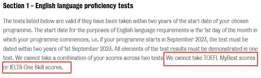 KCL不接受托福“超级分数”和雅思单科重考的成绩,也是出于对公平性的考虑。如果KCL允许申请者通过重考单项来提高总分,那么这可能会导致一些申请者通过重考单项来提高总分,而实际上他们的整体语言能力并没有提高。这样的做法可能会对那些在次考试中就达到要求的申请者不公平,因为他们可能在没有重考的情况下就满足了KCL的语言要求。