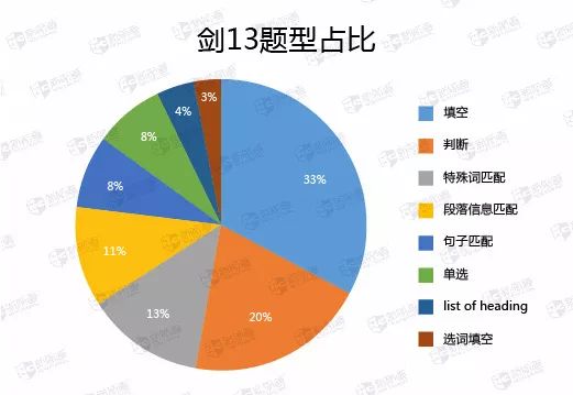 简单总结一下剑13题型的呈现情况,即为“填空判断仍为两大巨头,特殊词配对比例明显增加,LOH大幅度减少,多选和简答没有出现”。