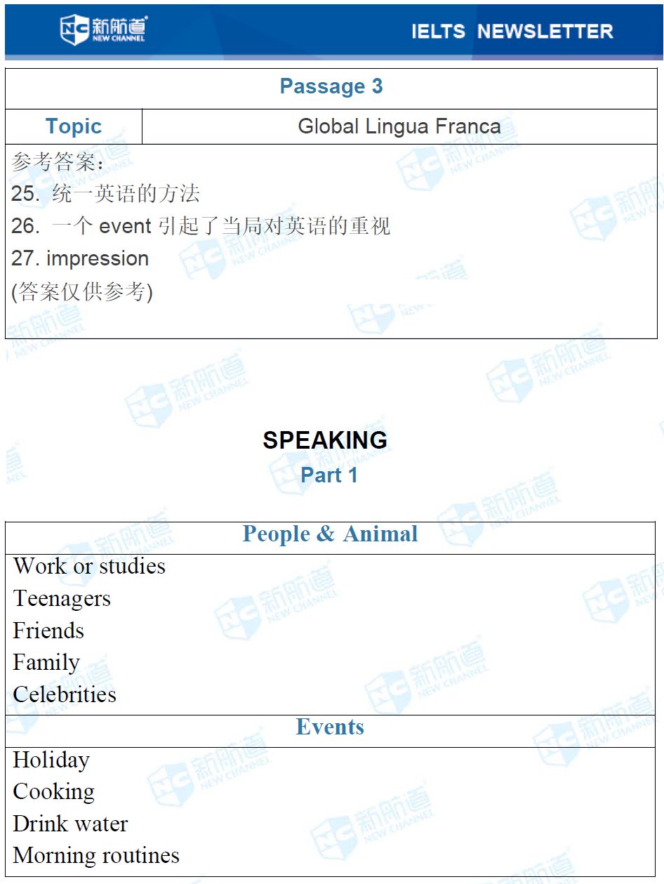 更多雅思考试回忆及备考资源,敬请关注新航道雅思频道。