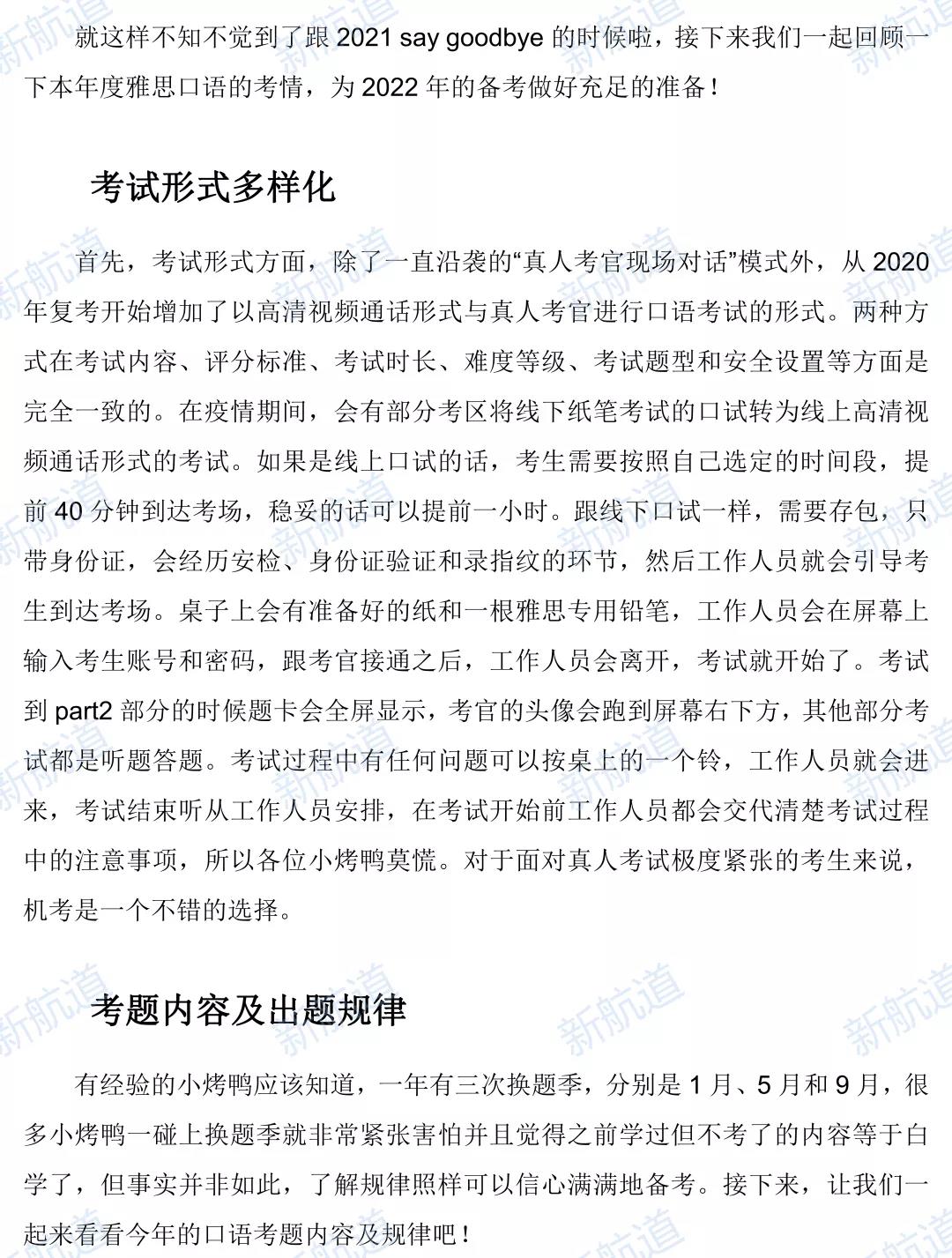 2021年雅思口语考情分析,2022年雅思考试趋势解读!