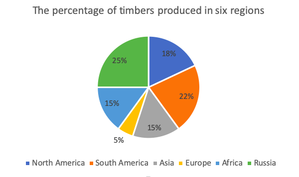 Of all those forest owners, two major manufacturers of timber were Russia and South America. Their productions made up 25% and 22% respectively, and either percentage was roughly equivalent to that of the productions of North America and Europe combined. It is also worth mentioning that timber yielded by Asia and Africa were of almost the same amount.
