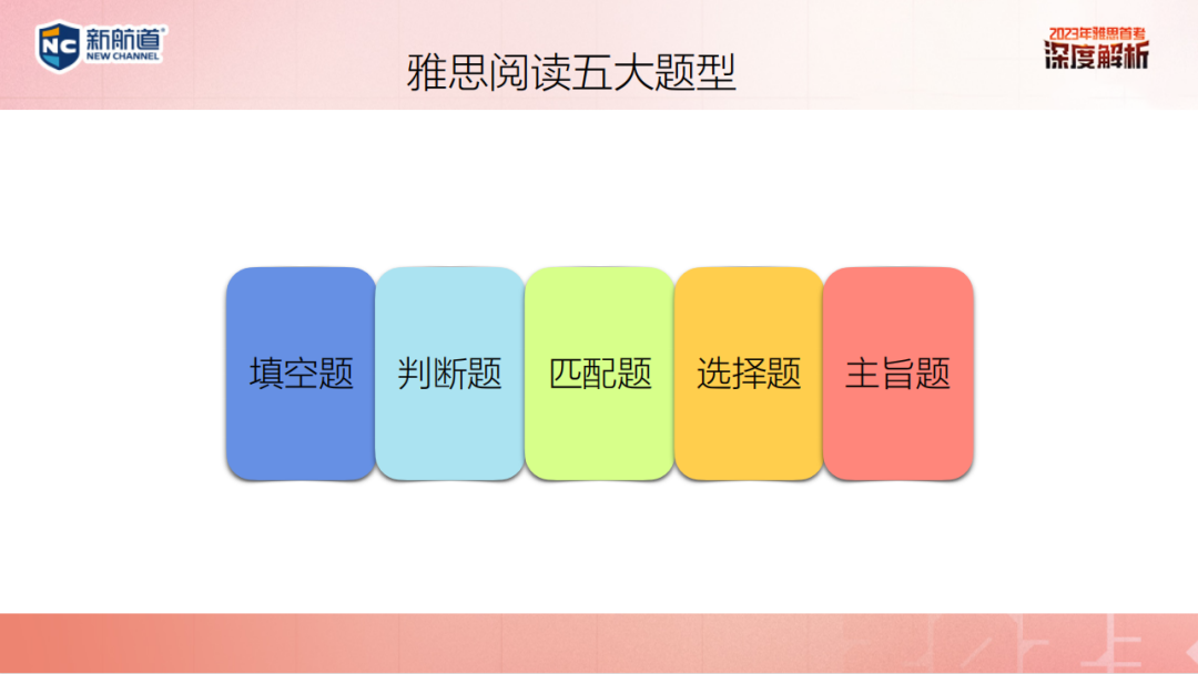 在对五大题型有所了解后,张孟雨老师展示了2022年全年雅思阅读题型占比,其中占比较多的为:填空题(34%)、判断题(25%)、匹配题(24%)。