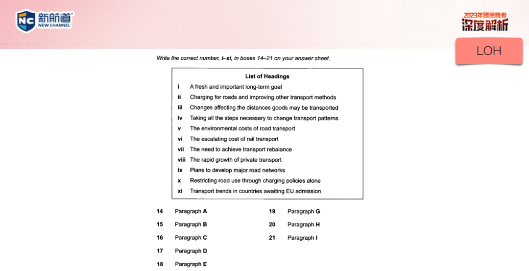 最后一个题型为List of Headings,也就是段落主旨题。