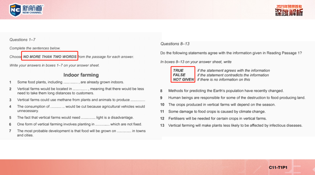 判断题主要考察大家的逻辑思维,一般分为“True/False/Not Given”或者“Yes/No/Not Given”(纸笔考试)这 3 个选项。