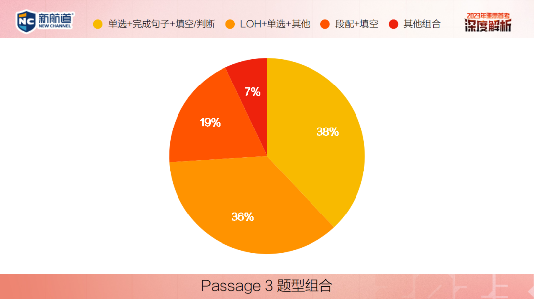 P3以单选题为主,这是一个稳定的趋势。同时heading题和段配题也逐渐出现在了 P3 中,难题向更难的文章里倾斜,这只是去年呈现的一个小现象,至于能不能形成趋势,还要等明年再看。
