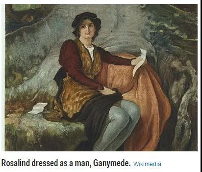 Rosalind is pretending to be a man named Ganymede while she is with Orlando, with whom she is in love. He's also in love with Rosalind — and doesn't know she is Ganymede — and practices how he would woo Rosalind with Ganymede. At one point, Rosalind/Ganymede suggests that they have a pretend wedding, and asks if one can ever have too much of a good thing.