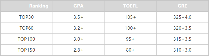 那么想要申请到到底需要多少分?你的分数能申到什么层次的学校?下面就总结一下美国大学研究生文科、商科、理工科的硬件录取条件,看看你的成绩到底能申请到什么层次的学校吧~~~