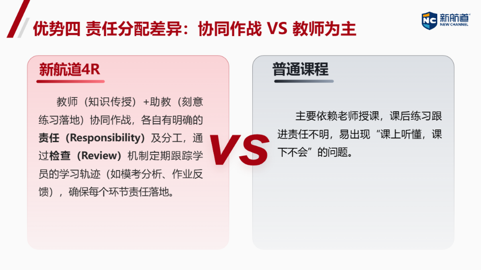 它是一个完整的、科学的系统——以终为始(Result)、强调责任(Responsibility)、重视过程检查(Review)并辅以激励(Reward)的闭环系统,保证了教学的科学性、实用性和高效性。它成功消除了学生、老师和助教之间的阻碍,实现了以学员为中心的“三位一体”,助力学员实现“高能高分,寻道幸福”,是科学、实用、高效的“个性化”。