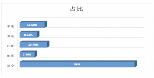 从听力题型占比、考题难度内容分布等方面都出现了一些新的变化,首先来看看题型分布图: