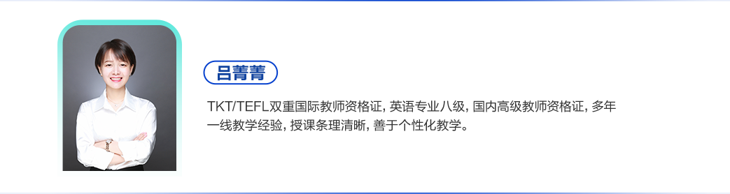 授课内容:词汇记忆法和构词法;听力练习长对话、讲座,帮助学生听懂4-5分钟的长对话或独白、快准预判内容、排除干扰项;阅读重点讲解做题技巧以及和考点相关的长难句分析,使学生能够准确完成阅读题目;翻译按不同话题补充核心词和表达句式,帮学生突破汉英互译表达在逻辑和形式上的差异;写作补充话题词汇和句型,让学员在面对不同体裁和主题的写作任务时,都能有语言素材,配合逻辑框架,快速下笔。